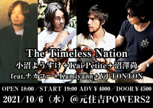さらに詳しく »日本を代表するジャズギタリスト小沼ようすけとマルチプレイヤーKai Petite、世界が認めたGROOVEドラマー沼澤尚による”The Timeless Nation”が登場!ゲストに元スーパーカーのナカコーを迎え予測不能のスペシャルセッションをお届けします。お楽しみに☆ ★The Timeless Nation〜小沼ようすけ+Kai Petite+沼澤尚 …