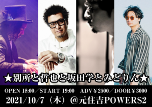さらに詳しく »ハナレグミ、ELT等のサポートを務めるハタヤテツヤ、Gentle Forest Jazz Bandのメンバーであり、藤原さくらやTHE BAWDIES等のライブサポートやレコーディングで活躍する別所和洋による「別所と哲也」開催決定!ゲストにポップス、ジャズ、即興音楽など幅広く活躍する坂田学とSOIL&”PIMP”SESSIONSのみどりんを迎えスーパ…