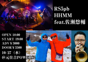 さらに詳しく »日本を代表するトランペッター類家心平率いるオルタナティヴジャズバンドRS5pbと日向秀和(ストレイテナー)+松下マサナオ(ヤセイコレクティブ)によるHHMM feat.佐瀬悠輔のツーマンLIVE開催決定! ★RS5pb × HHMM feat.佐瀬悠輔★ 2021/10/27(水)@元住吉POWERS2 OPEN 18:00/START 19:00 ADV¥…