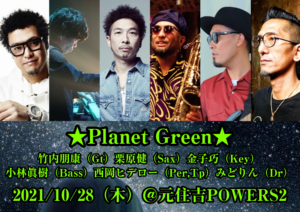 さらに詳しく »元SUPER BUTTER DOGのギタリスト竹内朋康率いるPlanet GreenワンマンLIVE開催決定!THE BANG ATTACK等で活躍する小林眞樹、SOIL&”PIMP”SESSIONS等で活躍する栗原健、Venue Vincentの西岡ヒデロー、Cro-magnonの金子巧、SOIL&”PIMP”SESSIONSのみどりんとい…