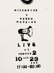 さらに詳しく »POWERS2 14周年アニバーサリーを祝して光風&GREEN MASSIVEワンマンLIVE開催決定! ★光風&GREEN MASSIVEワンマンLIVE★ 2021/10/23(土)@元住吉POWERS2 OPEN 16:00/START 17:00 ADV¥4000/DOOR¥4500 要予約:規定人数に達し次第受付終了とさせて頂きます。 1ドリンク+…