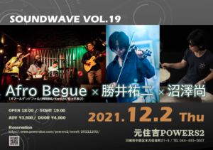Afro Begue presents Soundwave Vol.19開催! 今回のゲストは、 日本を代表するGROOVEドラマー沼澤尚さん 初共演となるエレクトリック・ヴァイオリニスト、ROVOの勝井祐二さん! どんなセッションが繰り広げられるのか、 予測不能な音の重なり、この日限りのスーパーセッションライブをお見逃しなく! ★Afro Begue pr…