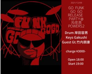 さらに詳しく »日本のトップFUNKドラマー岸田容男のソロアルバム「GO FUNK GO GO」レコ発LIVE開催決定!プロデューサー&キーボーディストのGAKUSHI、Momiji&The BluestonesやPlanet Green、IWAZARU等で活躍するスーパーギタリスト竹内朋康を迎えスペシャルな一夜をお届けします!お楽しみに☆ ★「GO FUNK GO…