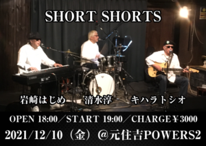 さらに詳しく »ビートルズやローリング・ストーンズのカバーを中心に60〜70年代の名曲の数々を圧倒的な演奏力と素晴らしいハーモニーで魅了する”SHORT SHORTS”。元矢沢ファミリーのキハラトシオ&岩崎はじめ、SEAMUS等で活躍する清水淳、ミュージシャンズミュージシャンによるスペシャルLIVE!必見です!! ★SHORT SHORTSワンマンLIVE★ 2021/12…