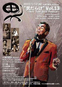 Big Duncun名義でも音源をリリースするなど今ノリにノッテるベーシスト大神田智彦が仕掛ける「”男だらけ”Vol.13 〜New Year Soul Festival」開催決定!文字通り男だらけのスペシャルなメンバーでお届けするフェスティバル&カーニバルな新年会!お楽しみに☆ ★大神田智彦 presents ”男だらけ” Vol.13 〜New Year…