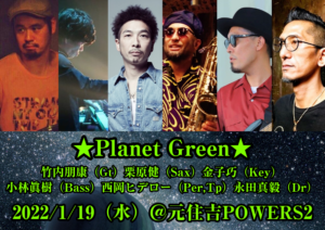 さらに詳しく »元SUPER BUTTER DOGのギタリスト竹内朋康率いるPlanet GreenワンマンLIVE開催決定!THE BANG ATTACK等で活躍する小林眞樹、SOIL&”PIMP”SESSIONS等で活躍する栗原健、Venue Vincentの西岡ヒデロー、Cro-magnonの金子巧、今回はドラマーに在日ファンク等で活躍する永田真毅を迎えGra…