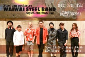 さらに詳しく »トリニダード・トバゴで生まれた楽器・スティールパンを通して、独自のスタイルで追求する音楽を「WAIWAIミュージック」と提唱するスティールバンド.2008年に結成、Playwrightより1stアルバム『TIME FOR PAN』、2ndアルバム『LAMP』、3rd EP『Cleared for take off』をリリース. 世代とルーツを超え、よりソリッ…