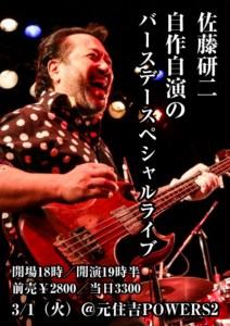 マルコシアス・バンプのベーシスト佐藤研二、自作自演のバースデースペシャルライブ開催決定!日本一おめでたいベーシストのおめでたい誕生日です!ご利益あり☆ ★佐藤研二〜自作自演のバースデースペシャルライブ★ 2022/3/1(火)@元住吉POWERS2 OPEN 18:00/START 19:30 ADV¥2800/DOOR¥3300 1ドリンク+1フードのオー…