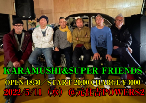 さらに詳しく »厚木が誇るメッセンジャーKARAMUSHIがJAHのお導きで魅き合わされた5人の音楽家と贈るKARAMUSHI&SUPER FRIENDSワンマンLIVE開催決定!ボブマーリーの命日にスペシャルな一夜をお届けします!全員集合JAH! ★KARAMUSHI&SUPER FRIENDS★ 2022/5/11(水)@元住吉POWERS2 OPEN 18:30/ST…