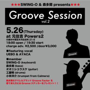 さらに詳しく »漆黒ミュージシャンSWING-Oと森多聞が組んでスタートしたライブイベント"Groove Session"のvol.2が早速決定!さらに豪華メンツを加えてこの日だけのスペシャルライブを目撃せよ!! 森多聞のアパレルブランド"Groove Factor"を 着てきた方にはGrooveステッカーをプレゼントしちゃいますよ!! ★SWING-O & 森多聞…