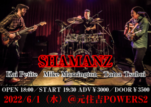 さらに詳しく »超絶スパニッシュギタリストTama Tsuboi、OceanOcean等で活躍するKai Petite、SEKAINOOWARI等のサポートを務めるMike Marrington、トリオ編成による変幻自在の新生SHAMANZワンマンLIVE開催決定!お楽しみに☆ ★SHAMANZ★ 2022/6/1(水)@元住吉POWERS2 OPEN 18:00/STAR…