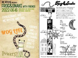 さらに詳しく »MC Mystie(voice)× TKD(guitar)のオモシロデコボコユニット"蛙と蛇"。音楽ジャンルに関係なく"音を楽しむ"をモットーに『クウカクワレルカ』な音を繰り出すふたりが元住吉Powers2に初登場! この日はふたりの原点『おしながきライブ』と素敵なおともだちを迎えた『with friends』とのセッションをダブルでお届け!即興で"あなた"…