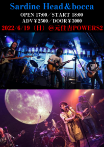 さらに詳しく »圧倒的な演奏力と個性的かつユニークな楽曲で音楽フリークやミュージシャンから絶大な支持を得る”Sardine Head”、Grateful Dead、Phish、moe等アメリカのJam Bandシーンに多大な影響を受け結成されたバンド”bocca”によるJammin’な一夜。Jam Bandフリーク必見! ★Sardine Head × bocca★ 202…