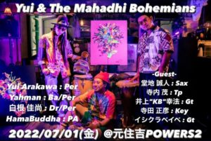 Yui & The Mahadhi Bohemians パーカッショニストYui Arakawaが中心となり、ドラムに 白根佳尚、ベースに Yahman をサウンドの軸として迎え、長年Yuiのパーカッションサウンドを支えているエンジニアHamaBuddhaを交えて始動したプロジェクト。 大地が揺らぐBeatを中心にアフリカンバティックのようなカラフル…