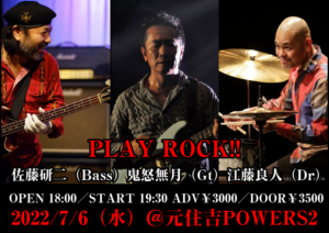 さらに詳しく »是巨人、KIKI BAND、Bondage Fruit、ERA、The DUO、FRET LAND、Play Rock!!、NITRO等、数々のバンドで活躍する超絶ギタリスト鬼怒無月生誕58周年を祝う5日間。ジャンルレスに活躍する鬼怒無月ならではの多彩なラインナップは必見です! ★Play Rock!!〜鬼怒無月+佐藤研二+江藤良人★ 2022/7/6(水)…