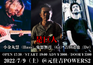 さらに詳しく »是巨人、KIKI BAND、Bondage Fruit、ERA、The DUO、FRET LAND、Play Rock!!、NITRO等、数々のバンドで活躍する超絶ギタリスト鬼怒無月生誕58周年を祝う5日間。ジャンルレスに活躍する鬼怒無月ならではの多彩なラインナップは必見です! ★是巨人〜鬼怒無月+小金丸慧+吉田達也★ 2022/7/9(土)@元住吉POWE…