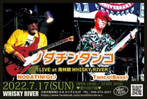 さらに詳しく »PUSHIM等のサポートで活躍するギタリストNODATINとHOME GROWNのベーシストTancoによるスーパーデュオが南林間WHISKY RIVERに登場!珠玉の名曲の数々をお届けします。お楽しみに☆ ★ノダチンタンコワンマンライブ★ 2022/7/17(日)@南林間WHISKY RIVER OPEN 19:00/START 20:00(2SET) ♡…