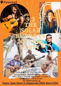 さらに詳しく »THE SOLAR BUDOKAN 2022 PRE-PARTY開催決定!中津川へ行く人も行けない人も一足先に盛り上がっちゃおう!ありったけの愛でお待ちしておりまーす☆ ★THE SOLAR BUDOKAN 2022 PRE-PARTY★ 2022/9/3(土)@元住吉POWERS2 OPEN 17:00/START 18:30 ADV¥3000/DOOR¥…