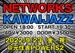 さらに詳しく »変拍子を軸に独自のグルーヴで高揚感に満ちた何層にも重なるアンサンブルを紡ぎ出す人力ミニマルバンドNETWORKSと吉祥寺を拠点とするミニマルハードコアソウルトリオKAWAI JAZZによる人力ミニマルバンド対決!?ありそうでなかったやつ!お見逃しなく☆ ★NETWORKS × KAWAI JAZZ★ 2022/9/23(金・祝)@元住吉POWERS2 OPE…