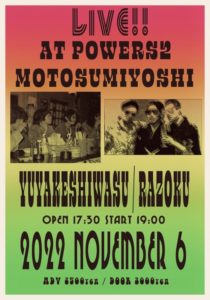 さらに詳しく »ゆうやけしはす2ndアルバム「怨恨戦士!! ルサンチマンvsシューマイ少女と神谷組 第一回戦 シケた街から風のように去れ!!」リリースPARTY開催決定!タイトル長過ぎですがライブもたっぷりやります!対バンはらぞく!アゲアゲでいきましょー☆ ★ゆうやけしはす × らぞく★ 2022/11/6(日)@元住吉POWERS2 OPEN 17:30/START 19…