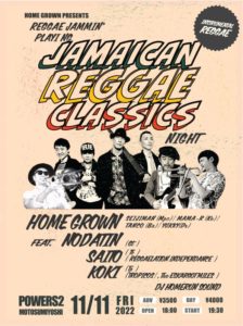 さらに詳しく »日本を代表するレゲエバンドHOME GROWNによる「PLAYING JAMAICAN REGGAE CLASSICS NIGHT」開催決定!全曲ジャマイカンレゲエクラシックのカバーという、ありそうで無かったHOME GROWN企画、本気のインストゥルメンタルレゲエナイト。ゲストにSAITO(Tb)、KOKI(Tp)、NODATIN(Gt)を交えあの名曲もそ…