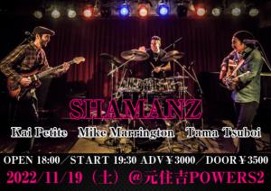 さらに詳しく »超絶スパニッシュギタリストTama Tsuboi、OceanOcean等で活躍するKai Petite、SEKAINOOWARI等のサポートを務めるMike Marrington、トリオ編成による変幻自在の新生SHAMANZ ONE MAN SHOW開催決定!お楽しみに☆ ★SHAMANZ ONE MAN SHOW★ 2022/11/19(土)@元住吉POW…