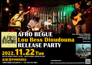 さらに詳しく »2010年11月22日 オマールとユウスケがAfro Begue結成して初めてライブをした日 12年後、4th Album & LP "Lou Bess Dioudouna" Release Party開催! Lou Bess Dioudouna = New Born バンドの救世主KenKenを迎えた新生Afro Begueのリリースを一緒にお祝い…