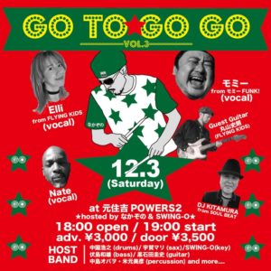さらに詳しく »ワシントンDC発祥のハネるグルーヴィーな音楽スタイル、GO GOのみでお届けするライブ #GOTOGOGO のVol.3開催が1年ぶりに決定!今回はよりFLYING KIDSメンバー増量でお届けしますよ!お楽しみに☆ ★GO TO GOGO vol.3★ 2022/12/3(土)@元住吉POWERS2 OPEN 18:00/START 19:00 ADV¥3…