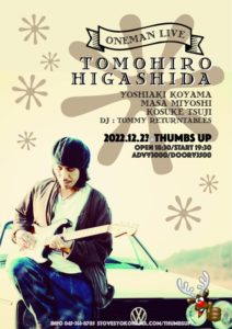 さらに詳しく »年末恒例の東田トモヒロワンマンLIVE@横浜THUMBS UP開催決定!誕生日前々々夜祭!?乾杯しましょう☆ ★東田トモヒロワンマンLIVE★ 2022/12/23(金)@横浜THUMBS UP OPEN 18:30/START 19:30 ADV¥3000/DOOR¥3500 1ドリンク+1フードのオーダーをお願いします。 ■LIVE 東田トモヒロ(Vo,…