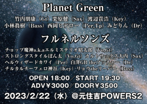 さらに詳しく »スーパーギタリスト竹内朋康率いるグラント・グリーンのトリビュートバンドPlanet Greenと所沢Mojoをベースに活動しエクスプロージョンなステージが好評なフルネルソンズによる川崎と所沢の友好の架け橋的ツーマン!お楽しみに☆ ★Planet Green × フルネルソンズ★ 2023/2/22(水)@元住吉POWERS2 OPEN 18:00/START…