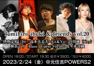 さらに詳しく »数々のメジャーアーティストのサポートで大活躍中のドラマー伊吹文裕率いる”fumihiro ibuki & friends”ワンマンライブ開催決定!お楽しみに☆ ★fumihiro ibuki & friends vol.20★ 2023/2/24(金)@元住吉POWERS2 OPEN 18:00/START 19:30 前売¥3500/当日¥…