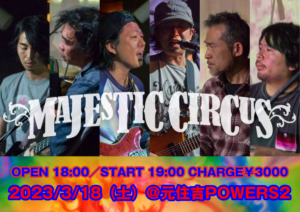 さらに詳しく »HOME MADE JAM〜Majestic CircusワンマンLIVE開催決定!2002年の結成から日本を代表するJam Bandとして活躍し続けるMajestic Circus、たっぷり2SETでロングトリップ!お楽しみに☆ ★HOME MADE JAM〜Majestic CircusワンマンLIVE★ 2023/3/18(土)@元住吉POWERS2 …