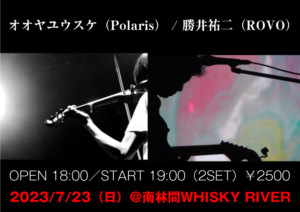 さらに詳しく »今年のフジロックのピラミッドガーデンに出演が決まっているPolarisのオオヤユウスケとROVOの勝井祐二のデュオが南林間WHISKY RIVERに登場!お見逃しなく☆ 2023/7/23(日)@南林間WHISKY RIVER OPEN 18:00/START 19:00(2SET) Music Charge¥2500 ※ご予約不要。お席は先着順となります。…