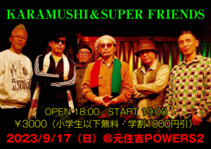 さらに詳しく »厚木が誇るメッセンジャーKARAMUSHIがJAHのお導きで魅き合わされた5人の音楽家と贈るKARAMUSHI&SUPER FRIENDSワンマンLIVE開催決定!全員集合JAH!! ★KARAMUSHI&SUPER FRIENDS★ 2023/9/17(日)@元住吉POWERS2 OPEN 18:00/START 19:00(2SET) CHARGE¥30…