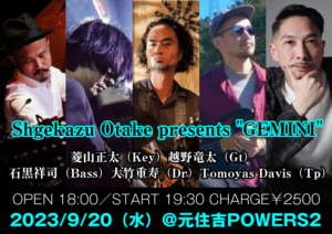 さらに詳しく »cro-magnonのドラマー大竹重寿が今までと違ったアプローチのjazzを試みようと集めたメンバーによるセッション。メンバーは確定せずにアメーバのように増えたり減ったりしながら進行予定。今回はTomoyas Davis a.k.a 竹内朋康が加わりさらにパワーアップ!お楽しみに☆ ★Shgekazu Otake presents "GEMINI"★ 202…
